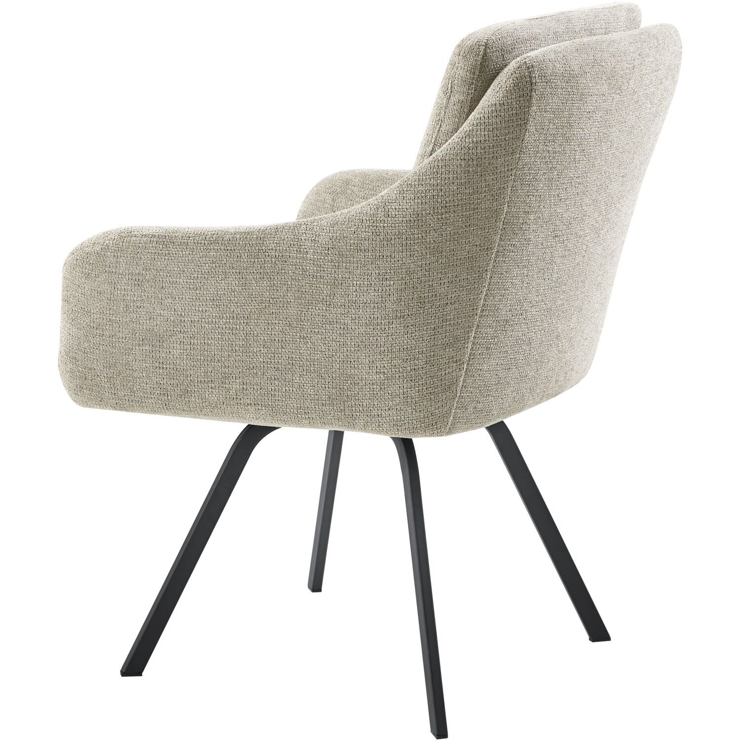 De armleuningen hebben een hoogte van 66 cm, waardoor de stoel goed aansluit bij de meeste standaard eettafels. Houd rekening met circa 2 cm speling tussen armleuning en tafelblad. De zwarte metalen poot is voorzien van een terugdraaimechanisme, zodat de stoel automatisch terugkeert naar zijn beginstand. Met de duidelijke handleiding is de montage eenvoudig zelf te doen.