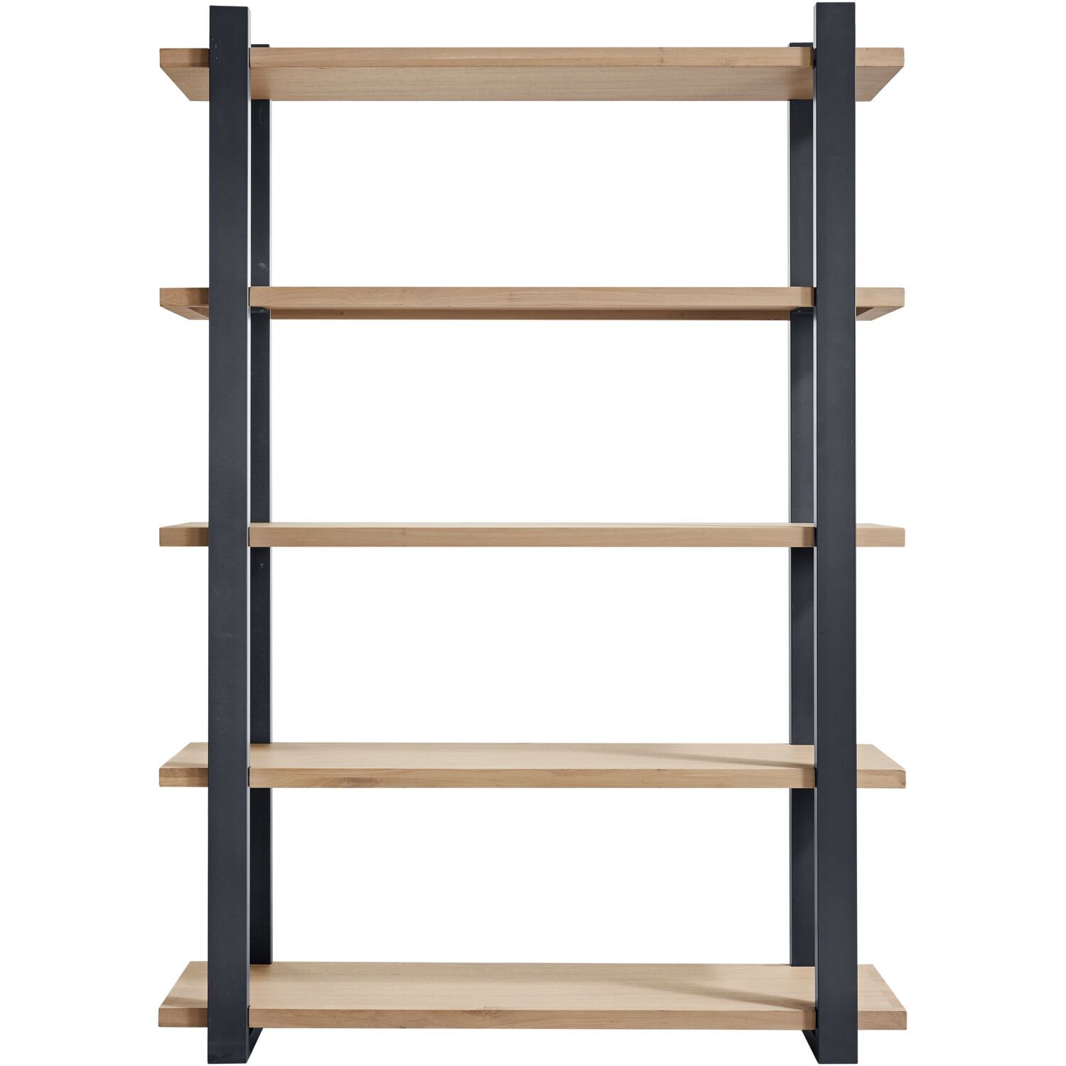 | Uitvoering | Uitgevoerd in robuust geborsteld eiken in de kleur 67.5 naturel grey, met 5 legplanken en RAL-7021 metalen frame. | Zelfmontage. |