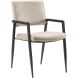 De stoel is voorzien van polyetherschuim in de zitting en rug, dit zorgt voor een wat steviger zitcomfort. De rugleuning, die door het zwart metalen frame met de zitting verbonden is, loopt iets schuin naar achteren. De pootjes lopen taps toe naar onderen, waardoor het frame een ranke uitstraling heeft. De armleuningen zijn voorzien van kunststof armleggers en zijn ca. 65 cm hoog.