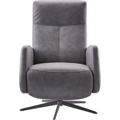 Relaxzetel Perfini is bekleed met een donkergrijze microvezelstof, deze heeft een licht gemeleerd patroon en voelt zacht en comfortabel aan. De stof is onderhoudsvriendelijk. Sierstiksels in de rugleuning zorgen samen met de stijlvolle armleuningen voor een elegante belijning.