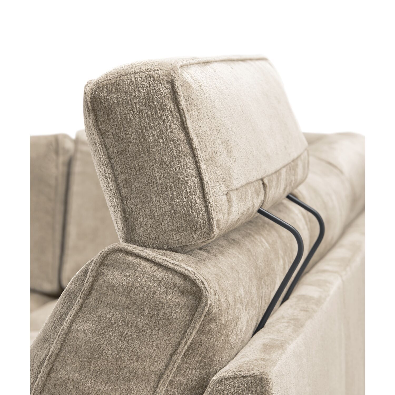 De elektrische relaxfunctie maakt het mogelijk om de rugleuning en voetsteun gelijktijdig te verstellen, zodat je met één beweging een comfortabele ligpositie inneemt. De hoofdsteun is zowel verstelbaar als verplaatsbaar, waardoor je de ondersteuning precies kunt afstemmen op jouw ideale zithouding. Dit maakt het relaxcomfort helemaal compleet. Een leuk detail: combineer deze opstelling met de Licato-tussenpoef voor een speels effect én extra zitruimte.