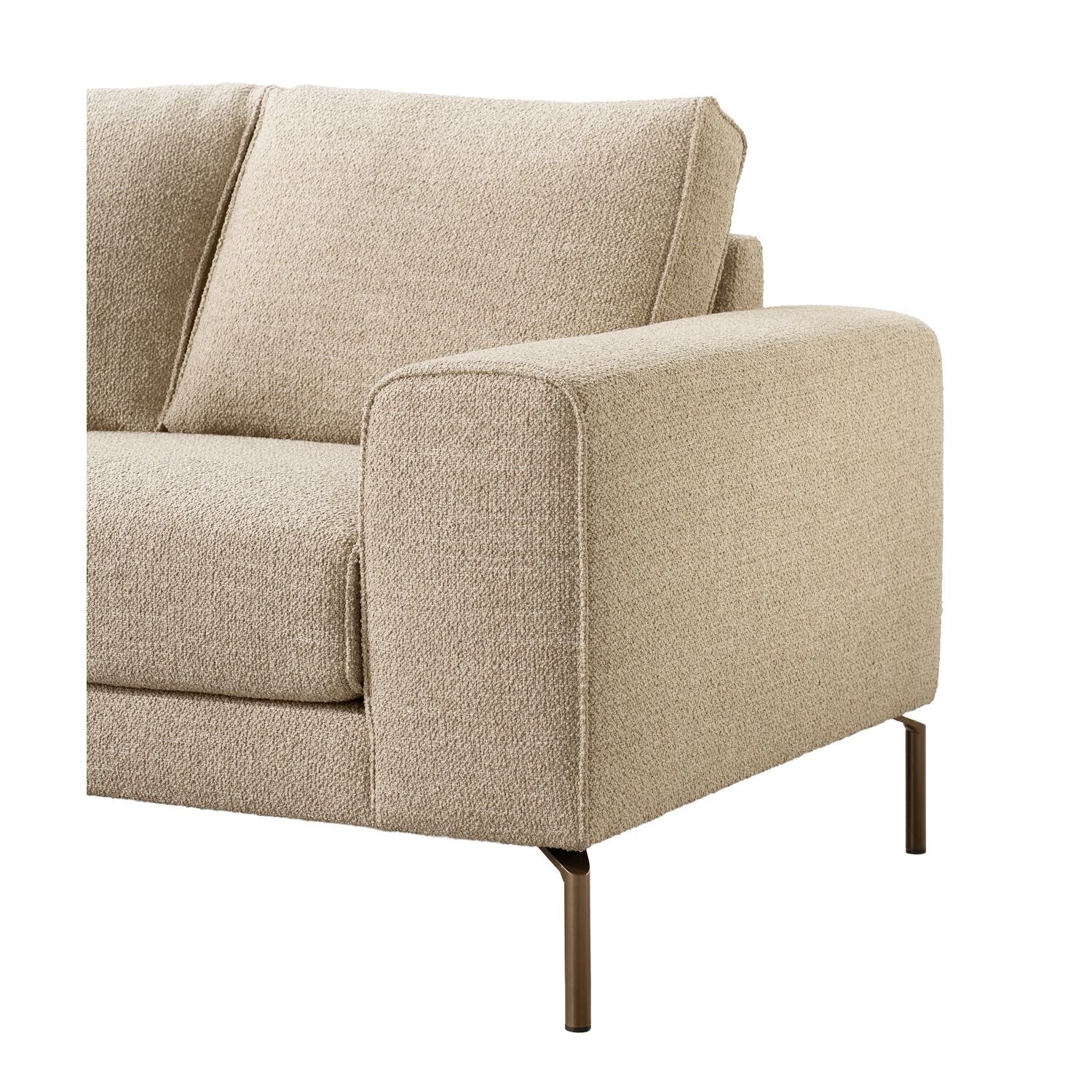 Hoeksalon Linoza heeft een moderne, tijdloze uitstraling door de royale vormen en de losse zit- en rugkussens. Desalon is uitgevoerd in een weefstof in een warme natureltint met een subtiele structuur, die zacht aanvoelt en zorgt voor een natuurlijke en sfeervolle uitstraling. De metalen poten in een warme bruintint geven desalon een stijlvol en eigentijds accent.